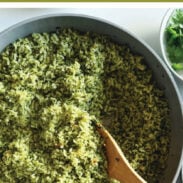 I could eat this green rice at every meal, a hundred different ways. It’s fluffy, flavorful, so pleasantly spicy, and loaded with green goodness.