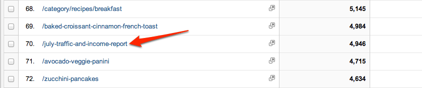 In terms of popularity – the traffic to these income reports is pretty small when compared to the recipes. The most popular income and traffic report from the last 30 days still had 60+ recipe posts ahead of it in terms of traffic. Here’s a screenshot: https://start-now.today/wp-content/uploads/2013/09/Page-Traffic.png%3C/a%3E%3C/p%3E
