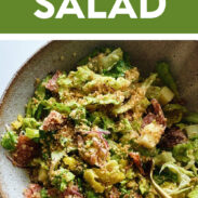 Wow this is salad is delicious we made it for having guests over twice in a row! Such a winner. It’s bright and fresh, but has so many great special flavors like the peppers. Instead of pepperocini peppers, we use banana peppers to tone down the spice a bit. I’ve also found you can cut the breadcrumbs in half, and it’s still plenty and delicious. Highly recommend!