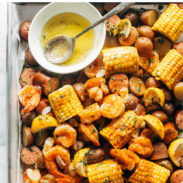Can you handle this Garlic Butter Shrimp Boil? We’re talking butter-drizzled juicy shrimp, steamy corn and potatoes, and luscious little side dishes of garlic butter for extra dunking. YUM!