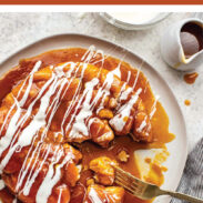 3. Assemble: Pour most of the pumpkin caramel over the biscuits until mostly covered. Set aside the remaining 1/4 to 1/2 cup caramel for topping.
