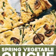 Springy Vegetable Quiche! Fresh sautéed spring vegetables with creamy and cheesy eggs, all baked into a flaky pie crust. Easiest fancy-feeling brunch!